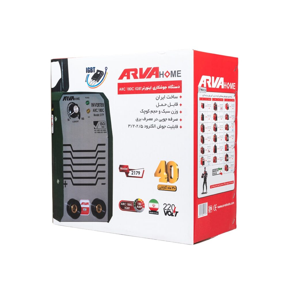 لوازم جانبی: انبر جوش و انبر اتصال ولتاژ برق: تکفاز ۲۲۰ ولت فرکانس: ۵۰ هرتز جریان ورودی اسمی: ۲ الی ۱۴ آمپر جریان خروجی: ۲۰ الی ۱۸۰ آمپر چرخه کاری: ۶۵% کارایی: ۹۸% ضریب توان: ۰.۷۳ درجه عایق کاری: F درجه حفاظت بدنه در فضای سرپوشیده: IP۲۳S درجه حفاظت بدنه در فضای سر باز: IP۲۱S وزن: ۳.۱ کیلوگرم ابعاد دستگاه: ۲۳۰×۱۳۰×۳۱۰ میلیمتر قطر الکترودهای مناسب: ۲.۵ به صورت دائم و ۳.۲ به صورت مقطعی نوع سوئیچ قدرت: IGBT مدت گارانتی: ۴۰ ماه ساخت ایران صرفه جویی در مصرف برق وزن سبک و حجم کوچک دارای ولوم current مجهز به فن ۵۵۰۰ دور مجهز به سیستم محافظتی خودکار مجهز به خاصیت anti stick دارای طراحی داخلی مناسب برای گردش هوا